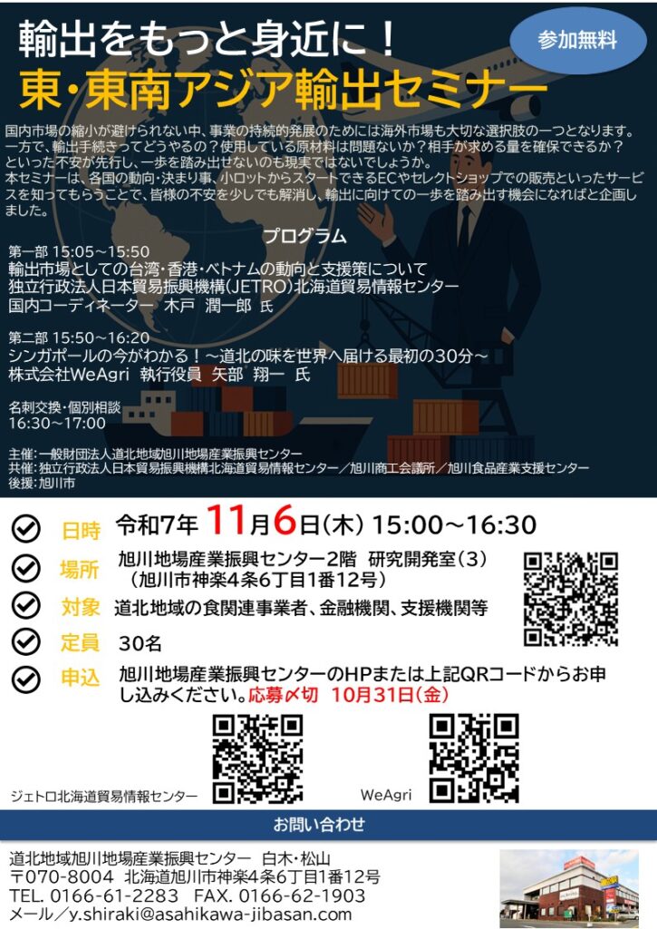 台湾、香港、ベトナムの市場動向や輸出の注意点、シンガポール向けのECサイト・セレクトショップでの販売について紹介するセミナーです。
