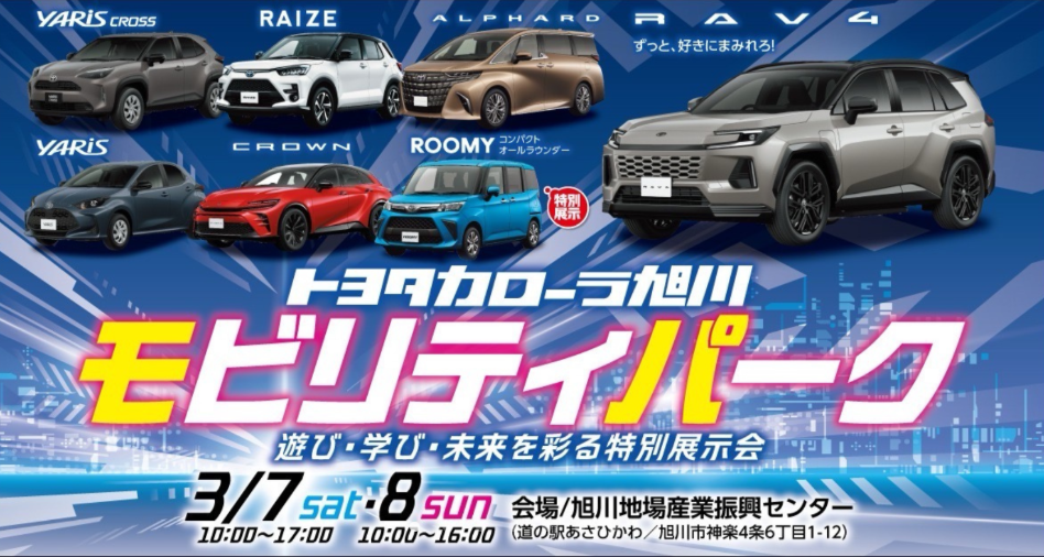 「旭川トヨペット×ネッツトヨタたいせつ 秋のファンフェスタ2025」が、9月27日(土)、28日(日)に道北地域旭川地場産業振興センター 大展示場(道の駅あさひかわ)で開催されます。