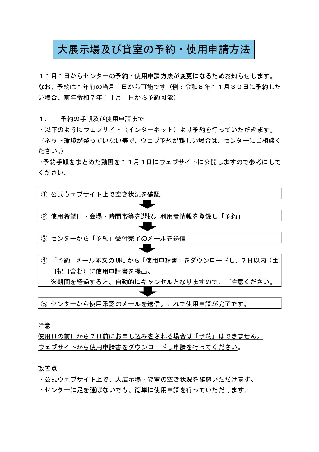 令和7年11月1日「大展示場及び貸室」予約・申請方法が変わります!